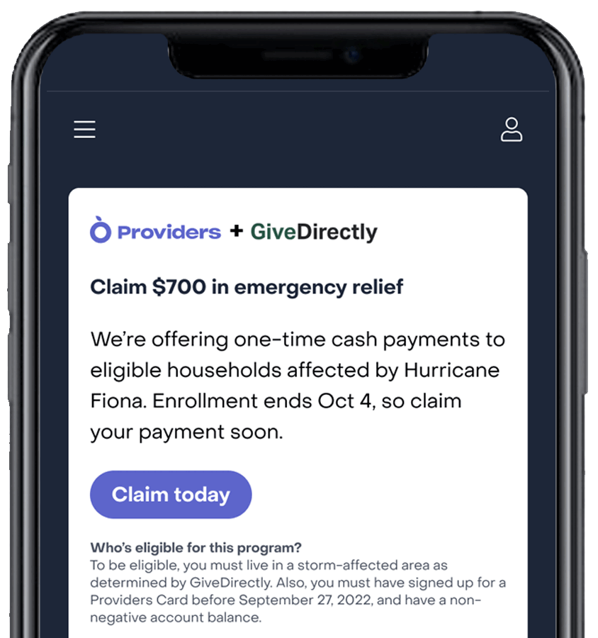 To then reach low-income households in these areas, we partnered with Propel, maker of the food-stamp benefits app Providers used by 5M Americans (about a quarter of all food stamp recipients). We invited users in eligible geographic areas to enroll through an alert in the app, which took them just three minutes on average. Because we’d pre-determined their financial and recovery needs, they weren’t burdened with submitting any additional proof of eligibility. For comparison, our previous enrollment process took around 25 minutes.