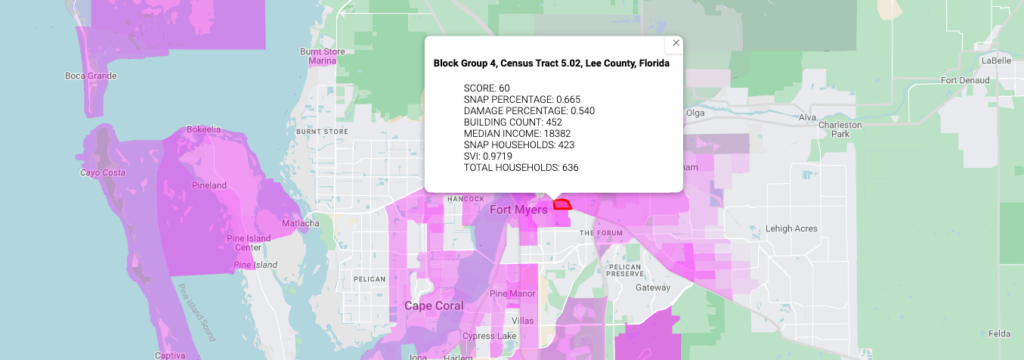 We then overlaid this damage data with government poverty data (like median income and food stamp usage) to identify areas that were both high-poverty and high-damage. What would have taken us weeks of in-person block-by-block assessments of homes we now completed in a few hours.