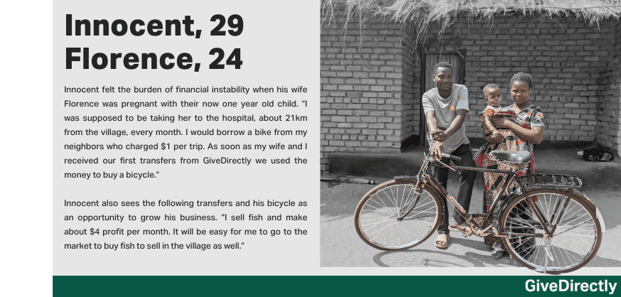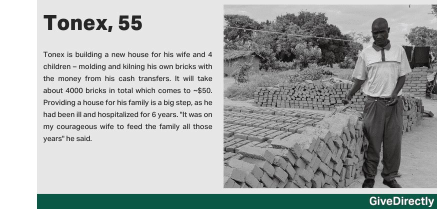 Hundreds of studies have shown that an effective way of helping someone who has no money is to give them money. It enables families to buy what they need and have a consistent source of income, allowing them to invest in themselves and their children.