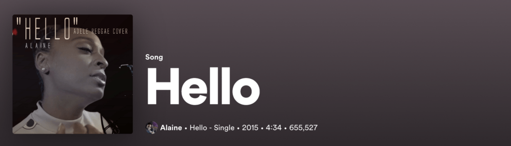 Her favorite song to listen to is the reggae rendition of Adele’s “Hello” performed by Alaine.