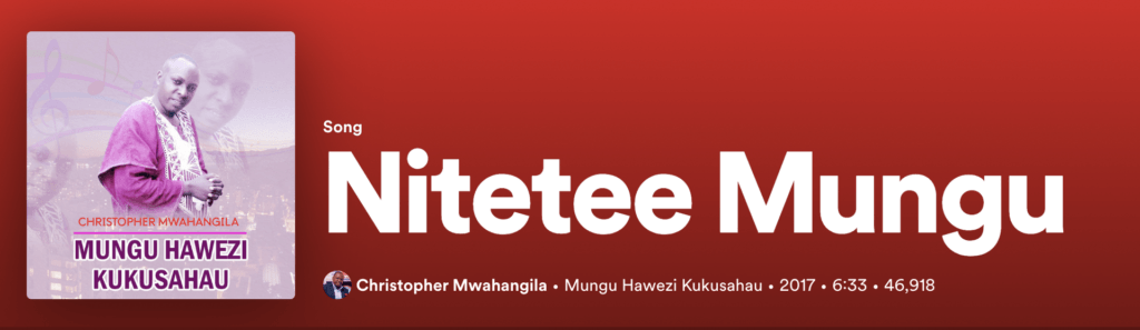 Gertrude loves gospel songs by Chris Mwahangila, particularly the song “Nitetee Mungu.”