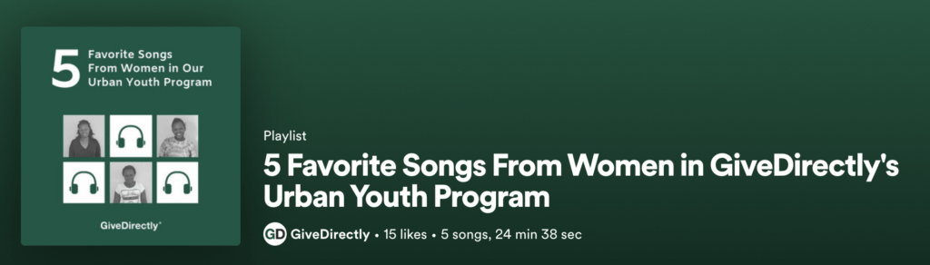 In our interviews, we wanted to hear how the transfers have affected their lives, but we were also curious to learn a bit more about how else these women use their smartphones. We’ve previously collected data from recipients in the urban youth program about how they use their phones, and 43.65% reported using their phone to listen to music or the radio on most days. So we asked the women we spoke with if they like to listen to music themselves, and if so, what their favorite song is.