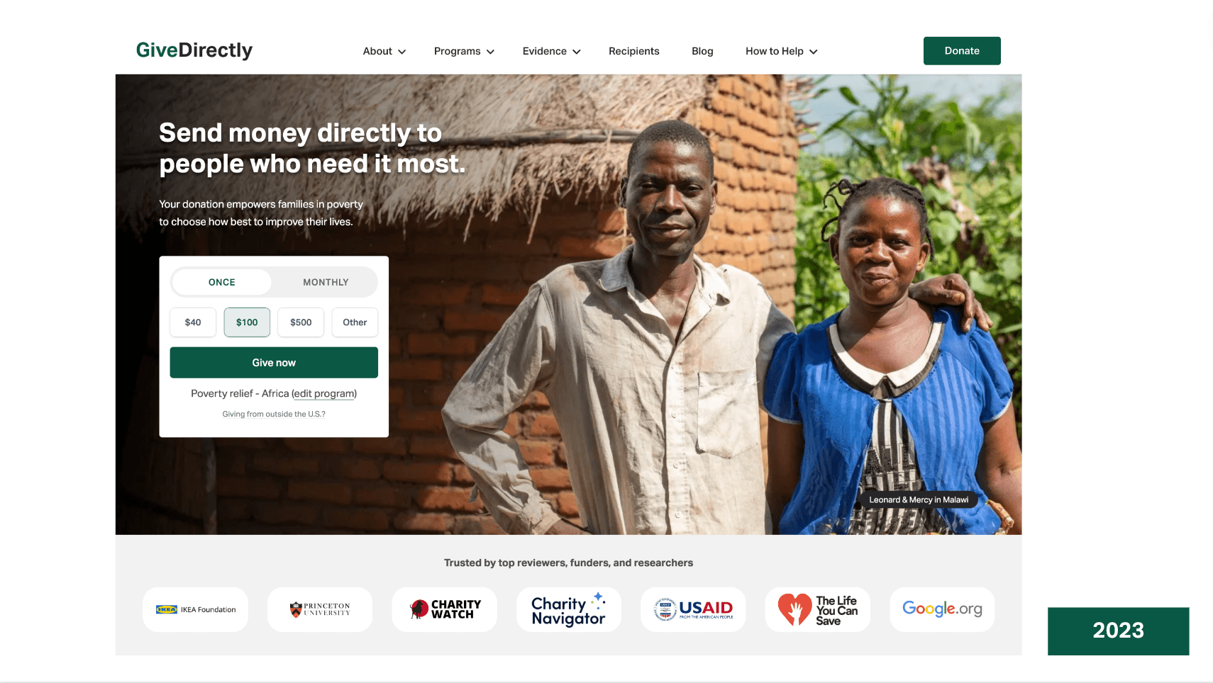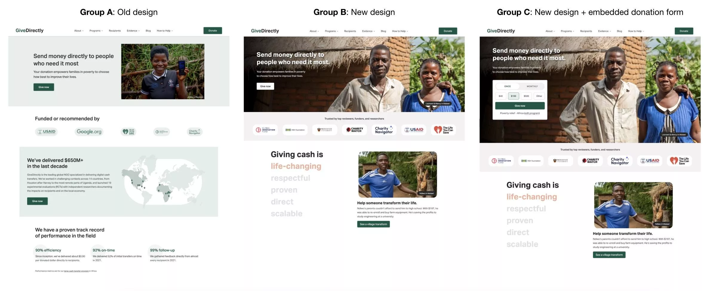 Similar to the randomized controlled trials we use to measure the impact of our cash transfer programs, our fundraising team often runs tests to see which tactics will raise the most money. The goal of these tests is to maximize the dollars we deliver to people in poverty at the lowest cost, and without using poverty porn to guilt you into giving. By sharing our learnings publicly, we want to help other organizations maximize their fundraising dollars to do more good.