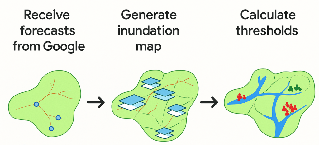 - Using Google’s AI-driven FloodHub forecasts to track flood risk in real time.